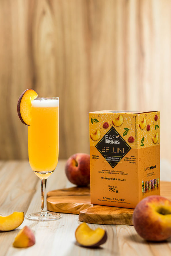 O clássico Bellini vem com seis sachês compostos por um mix de suco de pêssego, framboesa e cranberry. Para consumir, basta adicioná-lo ao espumante de preferência. O produto estará disponível para venda já na próxima semana, por R$ 35,54.