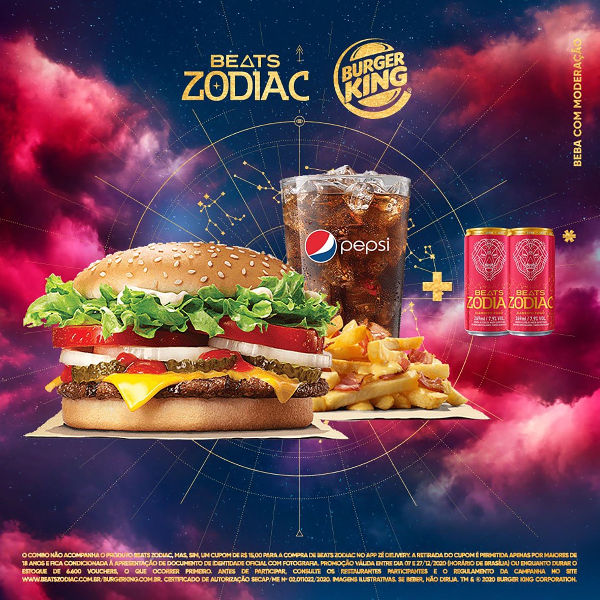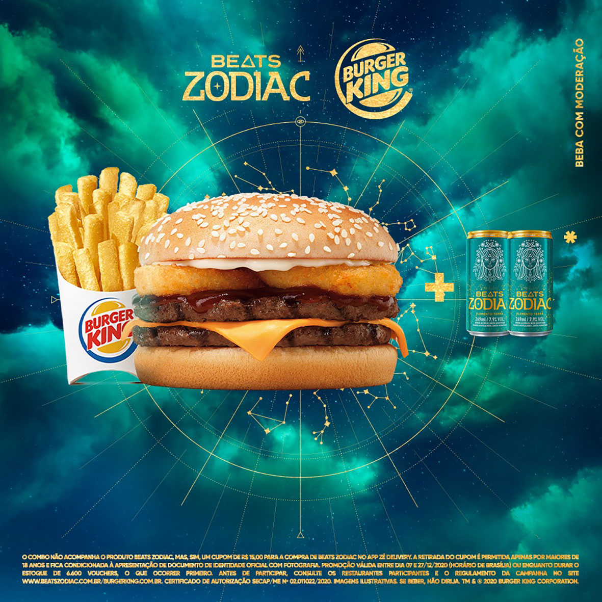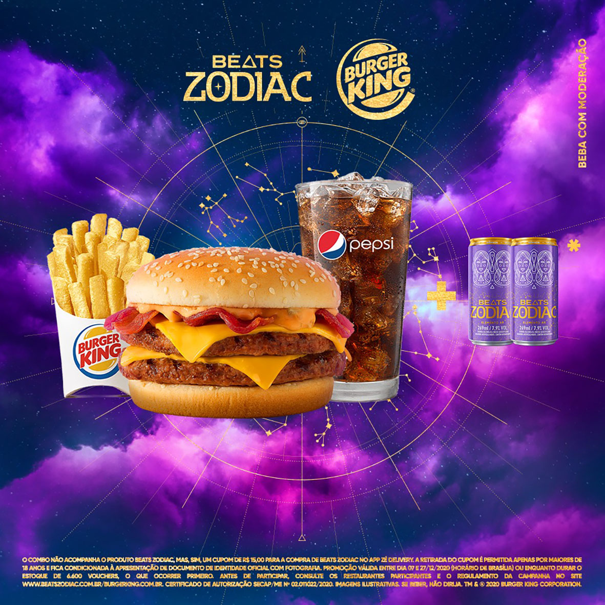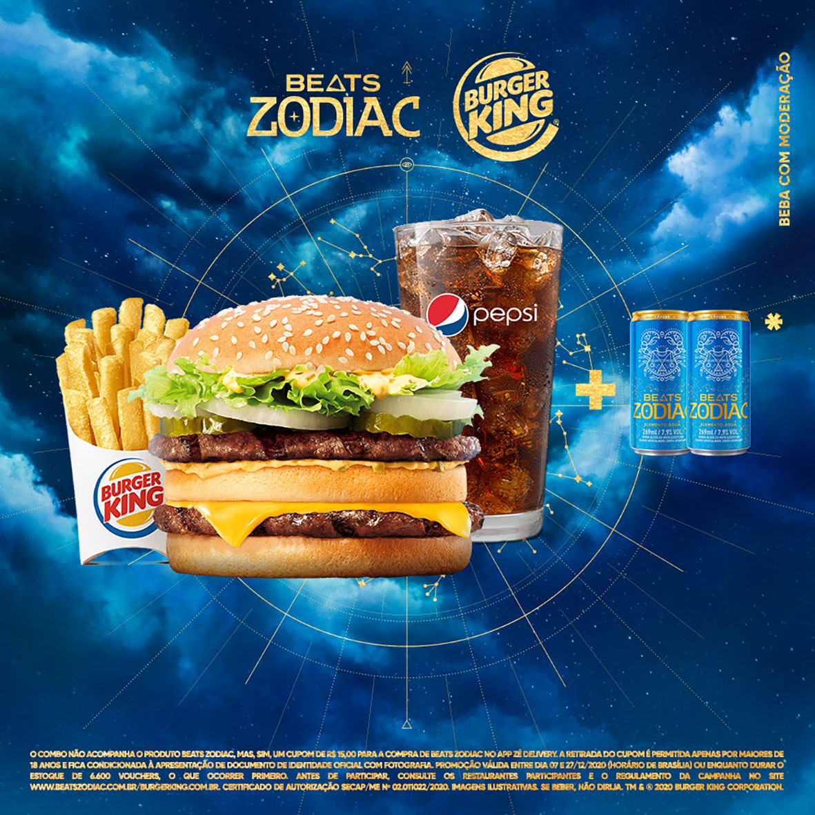 A Beats, linha de bebidas da Skol, fez uma parceria com o Burger King® para criar combos com os lanches da rede e a bebida da coleção BK Zodiac.