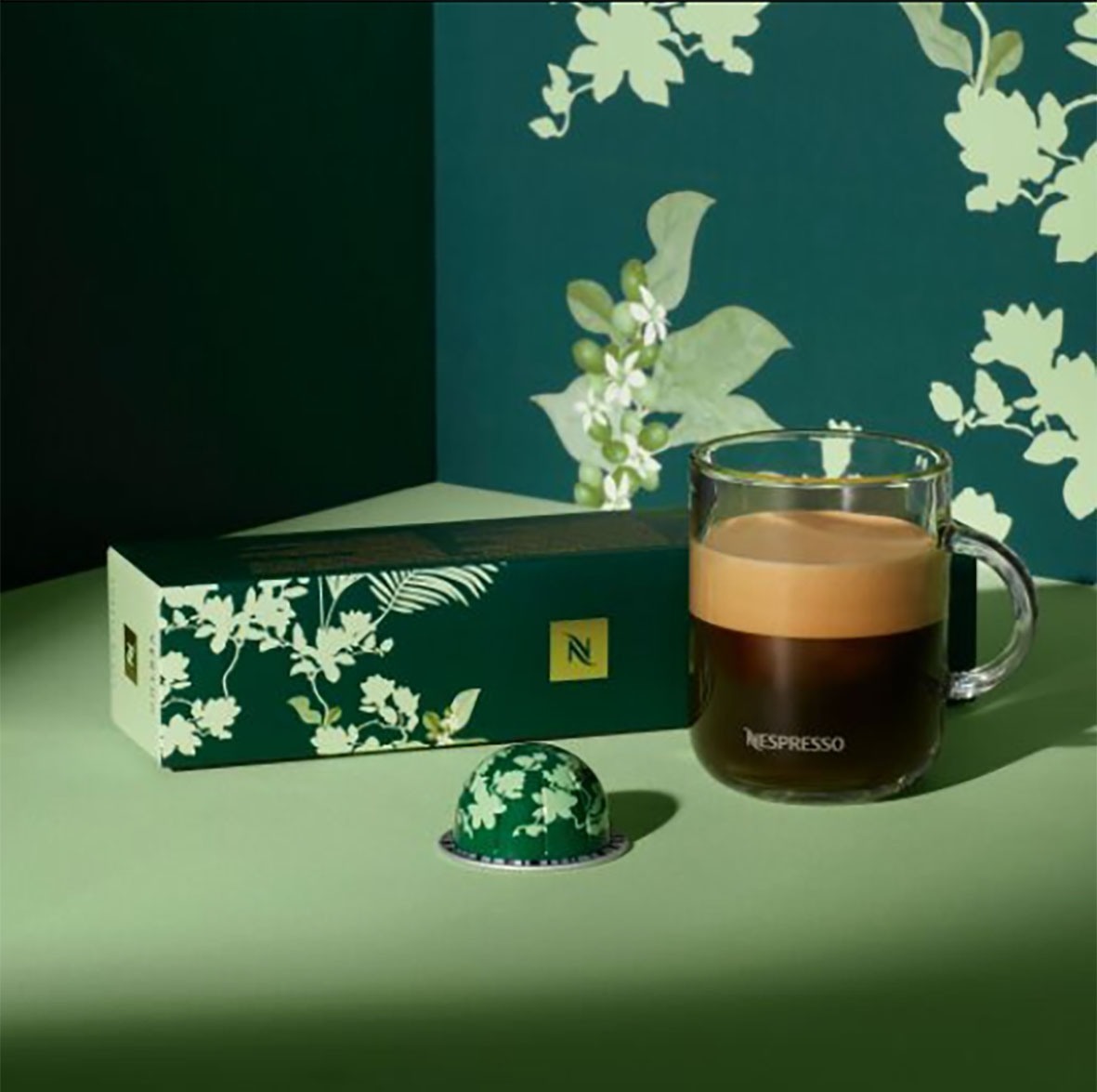 “O café colombiano também tem um lugar verdadeiramente especial em meu coração e como uma apoiadora ativa na luta contra as mudanças climáticas, sabendo que a Nespresso está indo além de seus compromissos agroflorestais ao apoiar a proteção de 10 milhões de árvores na Amazônia, foi mais um grande motivo pelo qual esta colaboração fez todo o sentido. Ao projetar a coleção, tive a ideia de capturar a beleza da floresta em cada peça, incorporando ricas copas das árvores e tons de terra escuros em meus designs”, explica Johanna Ortiz.
