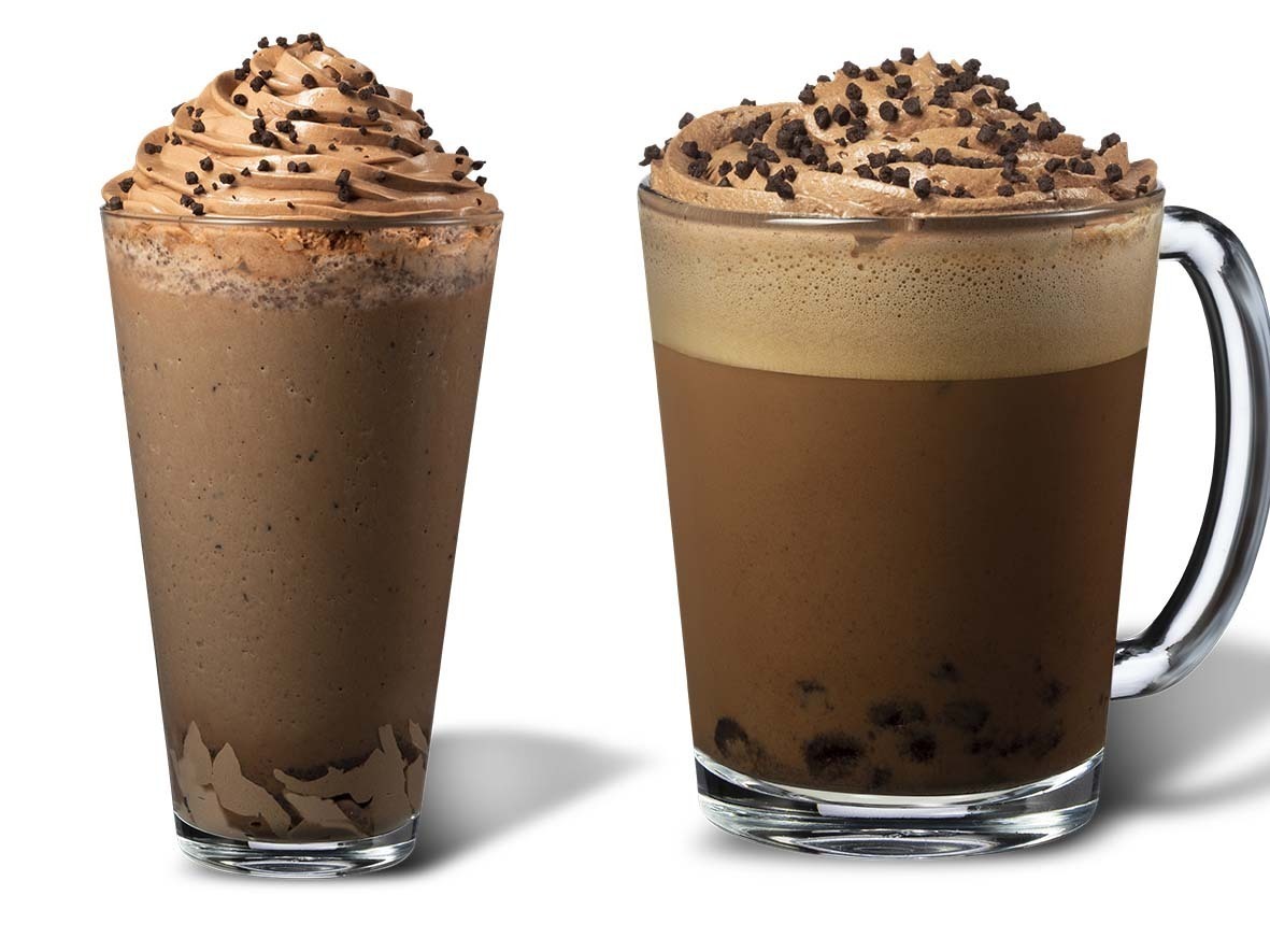 – Brownie Frappuccino®: feito com chocolate meio amargo, baunilha e pedaços de brownie, finalizado com chantilly sabor brownie e crocante de cookie. Disponível com café ou sem.