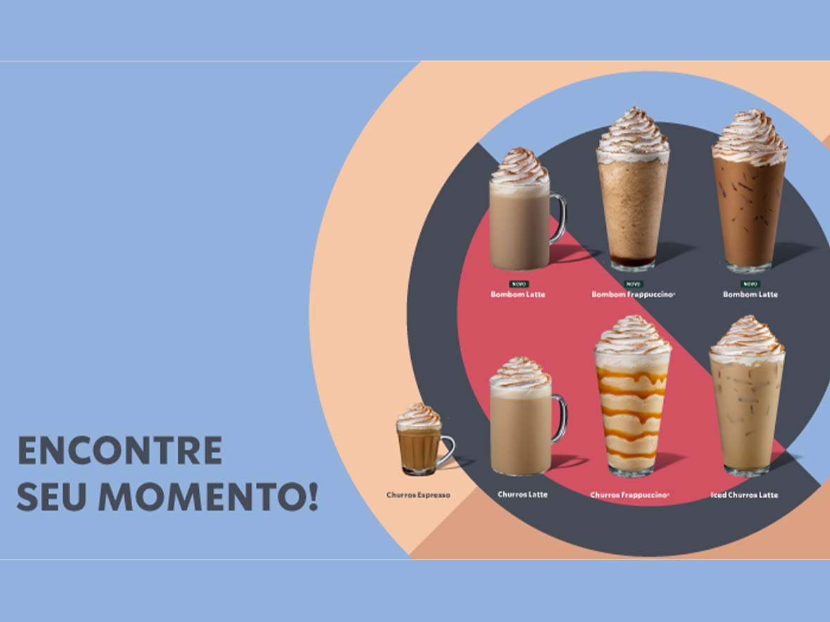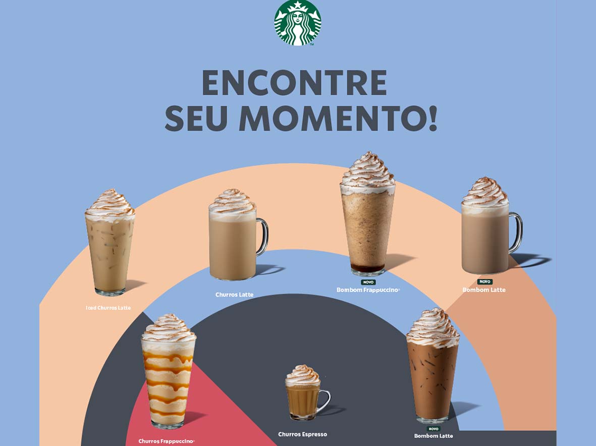– Starbucks® Churros: com doce de leite canela, nas versões Latte, Iced ou Frappuccino® – a partir de R$ 17,00 – ou spresso Colletion, a partir de R$ 10,50.