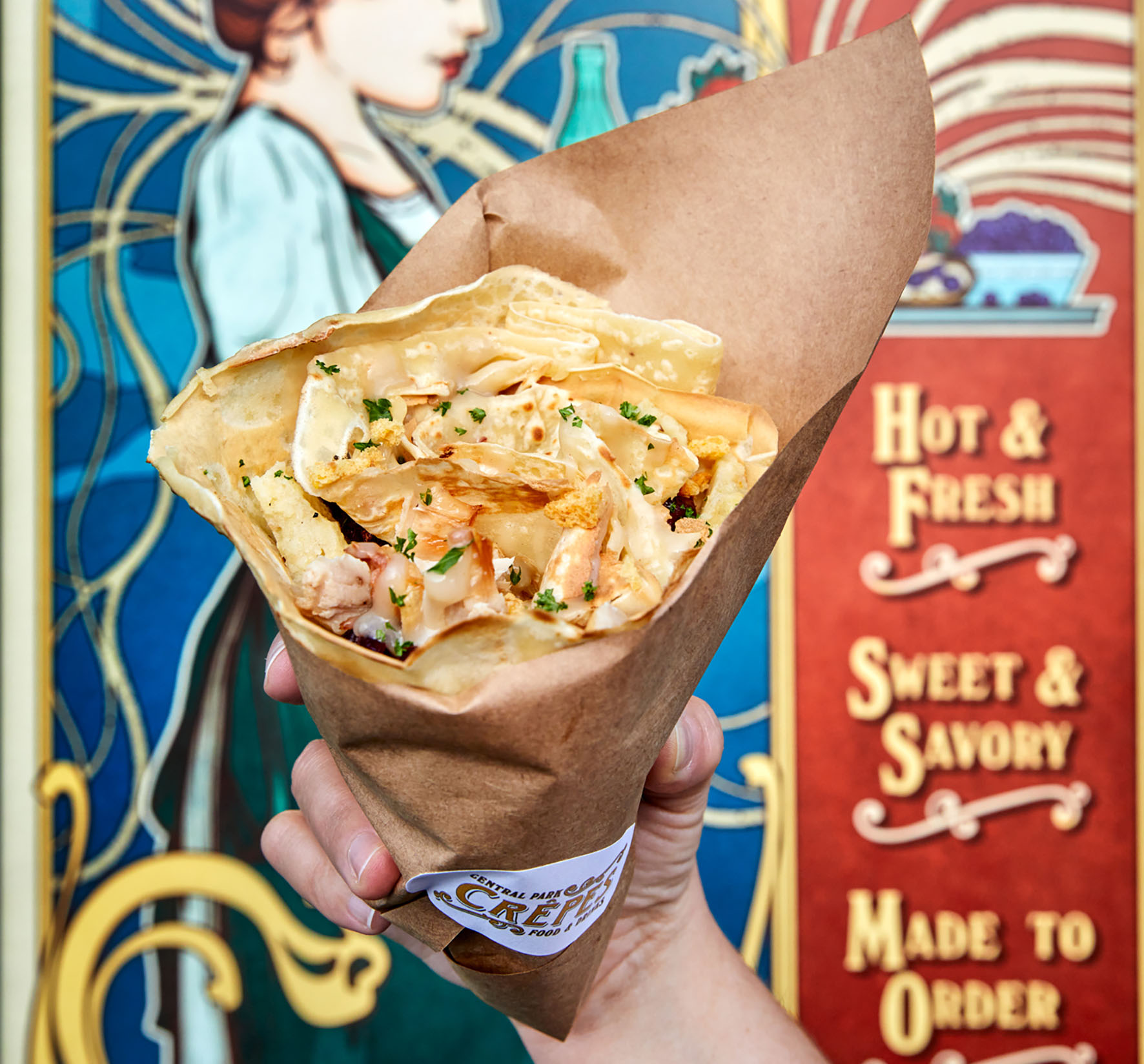 – Thanksgiving Dinner Crepe: crepe de Ação de Graças, recheado com carne de peru, molho, cranberries, recheios e croutons de broa de milho. É servido em um cone. Disponível no estande do Central Park Crepes, no Central Park, no Universal Studios Florida.
