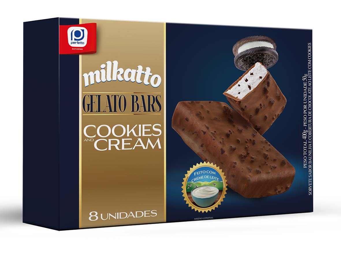 A novidade tem a barra de gelato no sabor cookies and cream e cobertura de chocolate ao leite, tudo feito com creme de leite e maior quantidade de sólidos, o que faz com que ele seja mais cremoso.