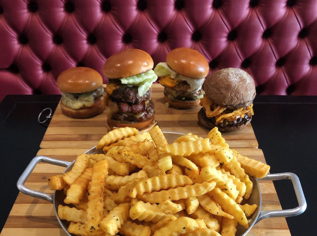 Cantagalo Burger (dois hambúrgueres de carne bovina, queijo cheddar, muçarela, bacon glaceado, alface, tomate, picles e fatias de cebola roxa pão de brioche); California Burger (filé de frango grelhado, queijo cheddar, muçarela, alface e guacamole); Ribs Burger (costela bovina temperada com sal grosso, assada lentamente e desfiada, além de sour cream, especiarias, tomate, rúcula, muçarela, manjericão e fatias de cebola roxa) e BBQ Burger (carne bovina, queijo cheddar, cebola crispy, bacon glaceado, fatias de pimenta jalapeño e molho barbecue artesanal, no pão australiano).