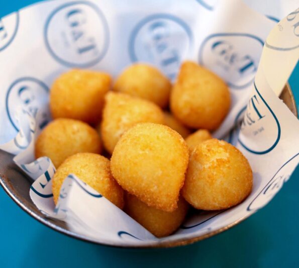 – Coxinha G&T, com recheio de frango marinado em gin.
