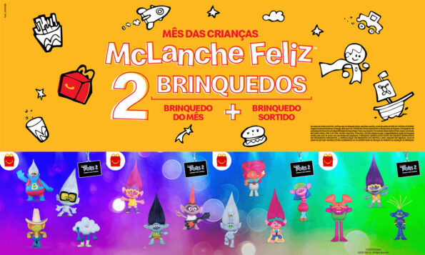 Essa opção de escolha vale para os brindes da campanha do mês, que é com personagens do filme Trolls 2, disponível em 14 modelos. Já a segunda é sortida e varia de acordo com o estoque de cada restaurante.