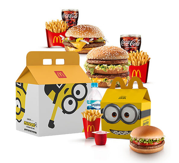 Ou seja, na compra de um McLanche Feliz, os consumidores escolhem um par dos brinquedos dos personagens, em homenagem à estreia do filme “Minions 2: A Origem de Gru”, prevista para o ano que vem.
