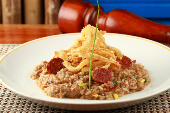 No cardápio, pratos desenvolvidos pelo chef Julio Rafael, como a Paella (R$ 270,00), tradição de mais de 50 anos da família Rios e também em versão vegana; Arroz de Pato servido com molho Roti, chorizo espanhol e cebola crispy (R$ 84,00) e o Cordeiro assado durante doze horas e servido com crispy de couve, ragu de cogumelos, batata confit, creme azedo e páprica (R$ 280,00).