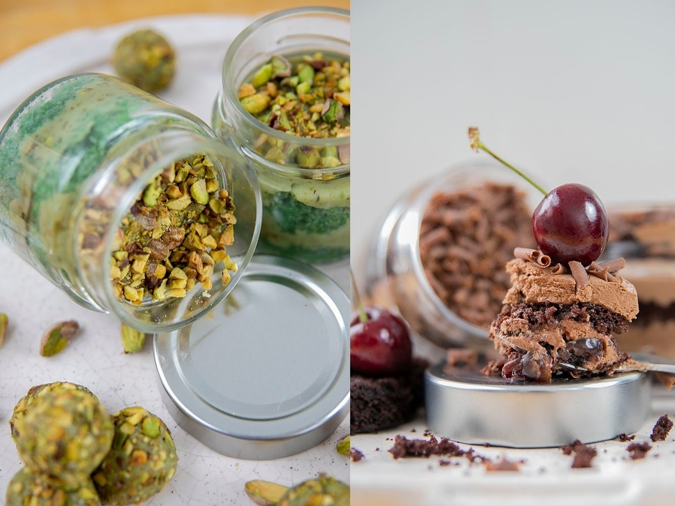 No bolo Floresta Negra, cerejas amarenas, tradicionais da Itália, conservadas em Bolonha e Modena. No de Pistache, o destaque fica por conta do recheio, feito com camadas de brigadeiro do produto.