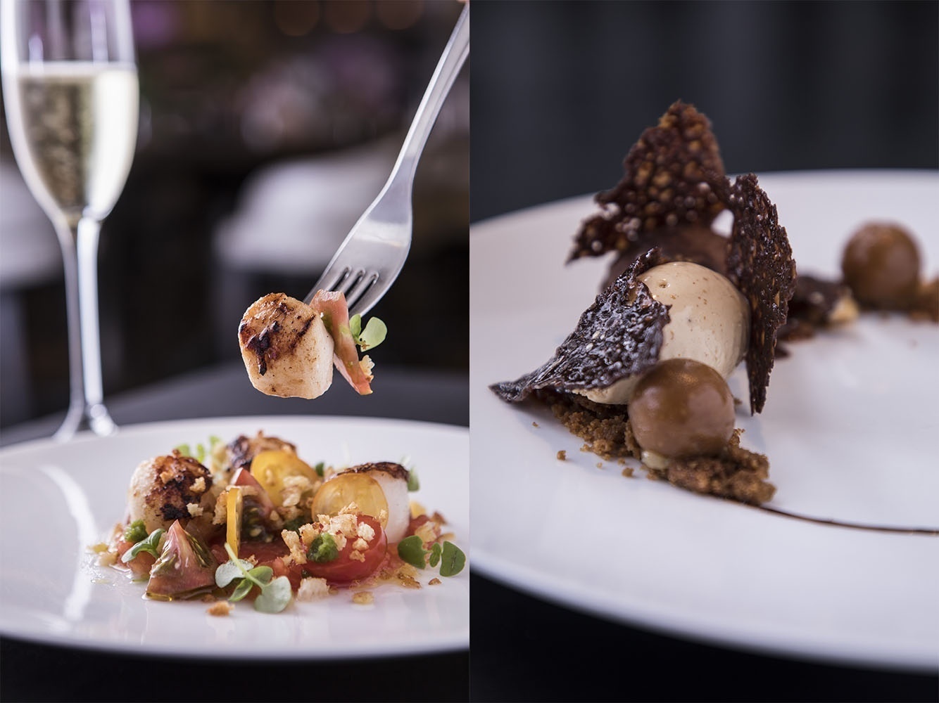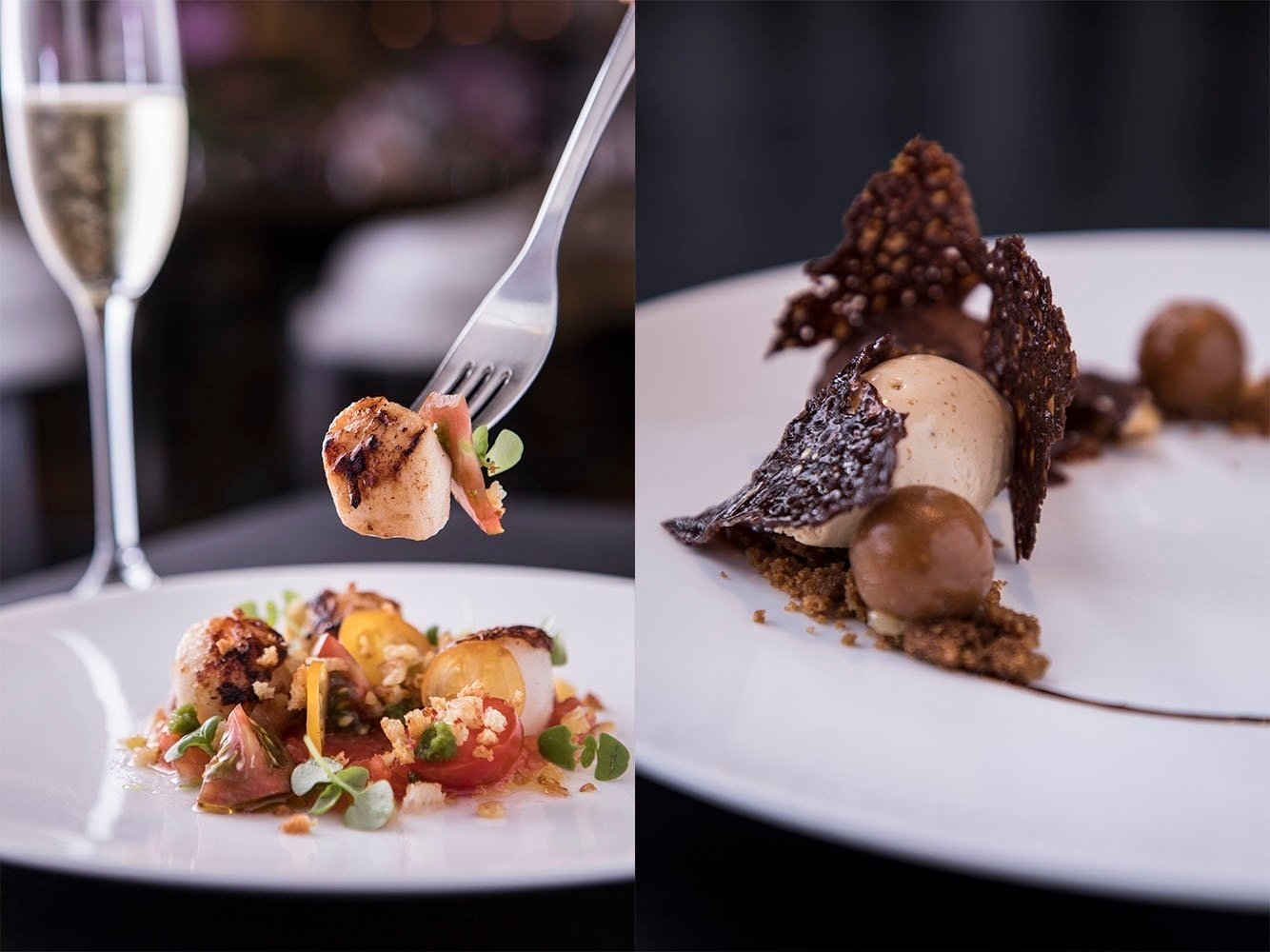 – Vieiras Grelhadas: acompanhadas de tomates orgânicos, croutons, azeite extra virgem e manjericão.