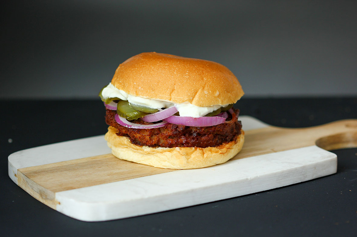 – Coll Chick (V): hambúrguer de grão de bico, homus, cebola e picles.