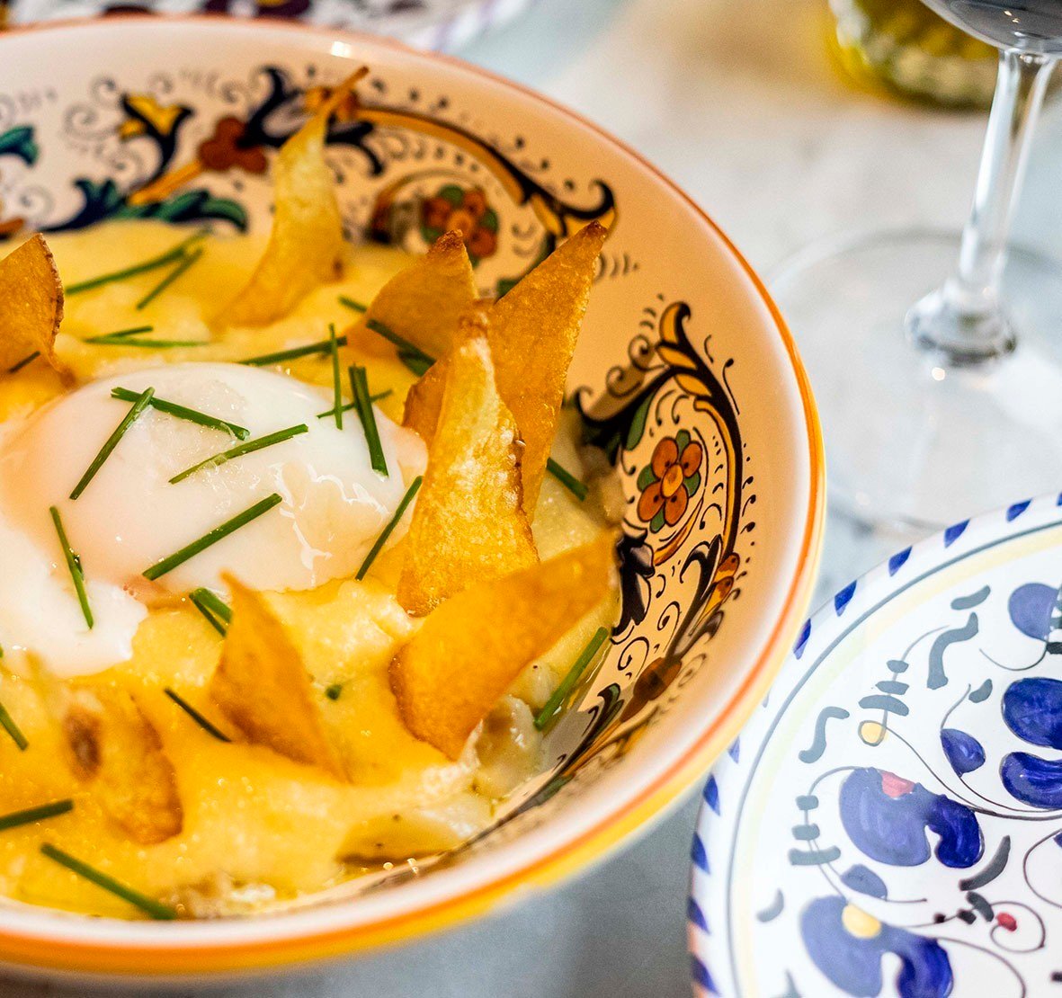 – Baccalà alla vicentina (R$ 68,00): polenta cremosa com lascas de bacalhau, creme de cebola dourada, ovo perfeito e chips crocante de batata;