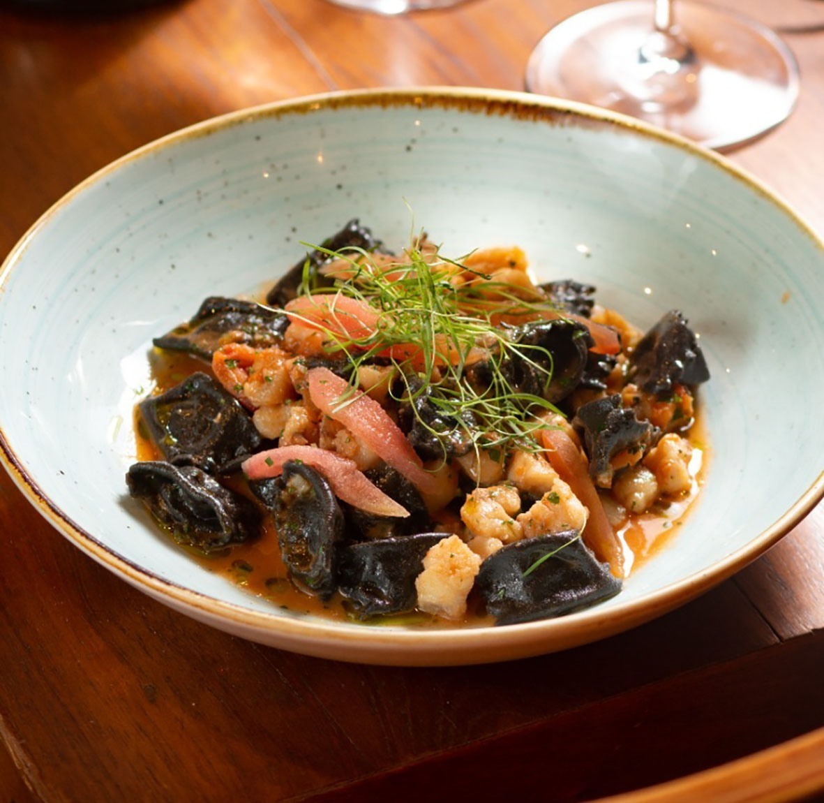– Agnolotti (R$ 62,00): massa fresca recheada de mousse de camarão e ragu de tamboril;