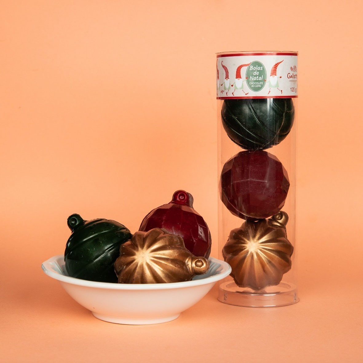 O principal destaque é a árvore de Natal em três dimensões (R$ 125,00 – 300g) e que leva chocolate ao leite 40% cacau. Há também o conjunto com três bolas de Natal de chocolate (R$ 51,00 – 120g) e quatro opções de guirlandas, inclusive uma recheada com creme de avelã (R$ 48,00 – 110g).
