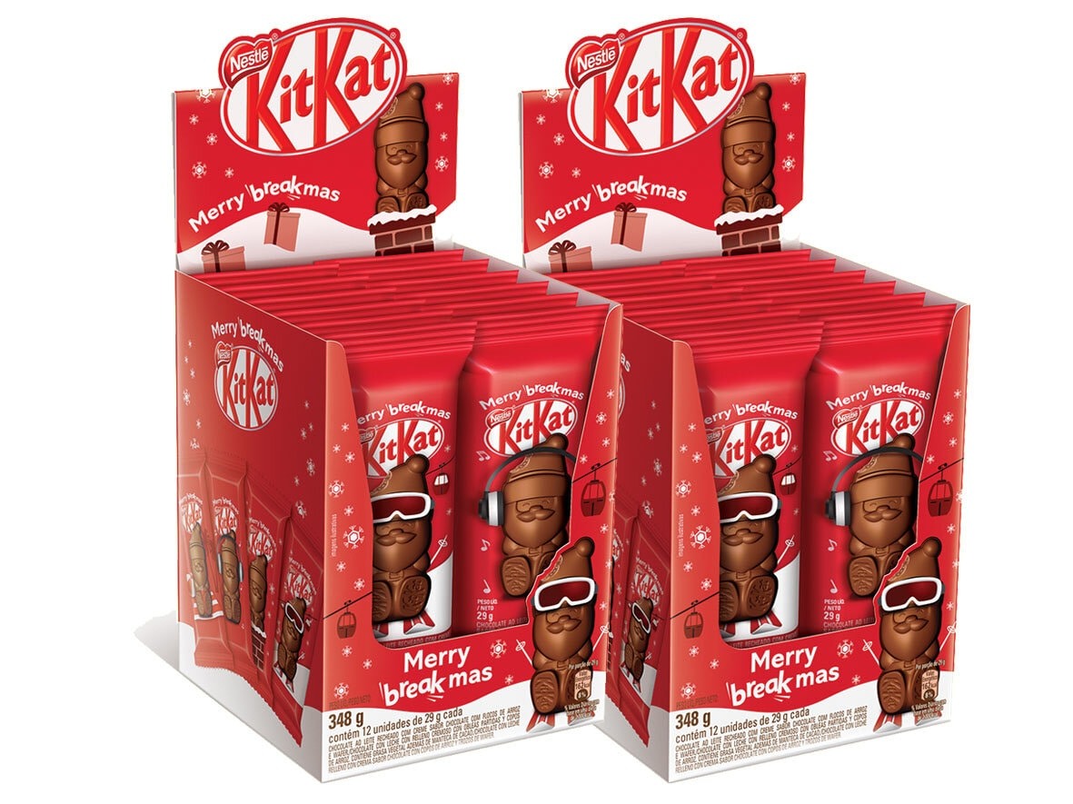 Já nos chocolates, o lançamento é uma edição especial Alpino Sabores (R$ 18,15) em caixa com 16 bombons recheados de caramelo salgado, trufa, gianduia e mocha, enquanto KITKAT® (R$ 3,29 cada) volta com a sua caixa de Papai Noel com 12 unidades do chocolate no formado do personagem.