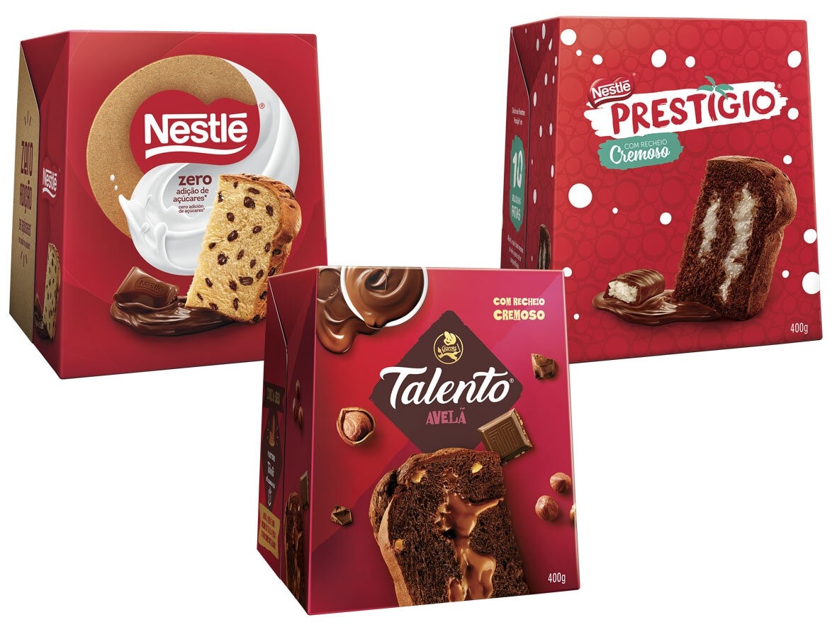 Outra novidade é o panettone Garoto Chocolate ao Leite, além da volta dos sabores Alpino ao Leite, Talento Avelã, Prestígio (cada um por R$ 31,99) e Nestlé Zero Açúcar (R$ 34,99).