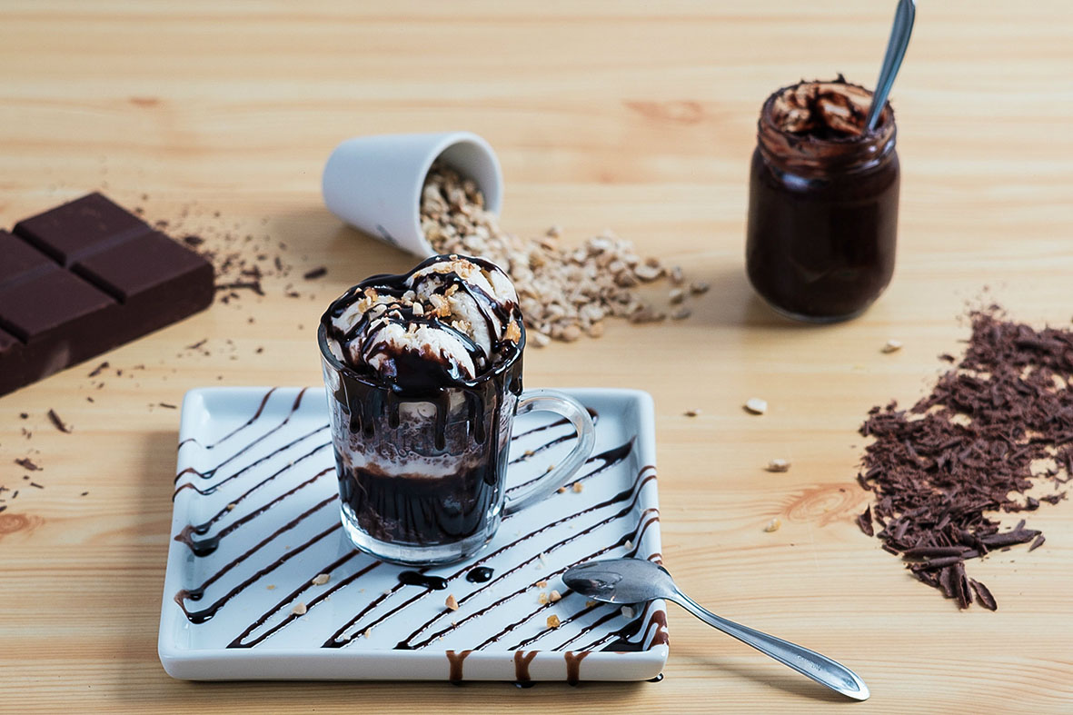 – Dália (R$ 22,00): sorvete vegano de baunilha com brownie picado, coberto por calda de chocolate e finalizado com crocante de amendoim.