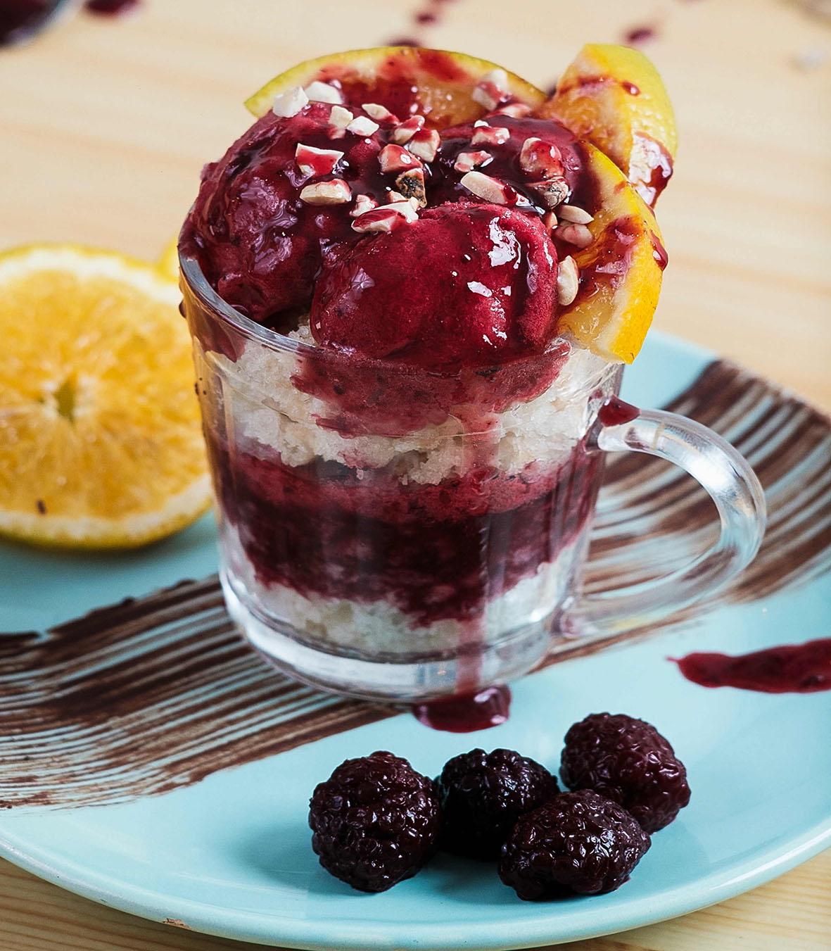 – Margarida (R$ 22,00): sorvete vegano de amora com bolo de baunilha, cobertos por calda de caramelo com laranja e decorado castanhas de caju torradas.