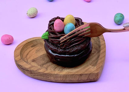 – Mini Toquinha (R$ 14,00): bolo de chocolate recheado com brigadeiro, coberto com ganache e finalizado com mini ovinho de chocolate.
