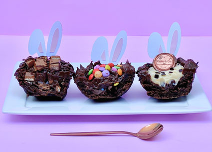 – Ovinho aos Tons de KitKat (R$ 30,00 – cerca de 10 cm): casca de brownie de chocolate recheada com brigadeiro e KitKat.