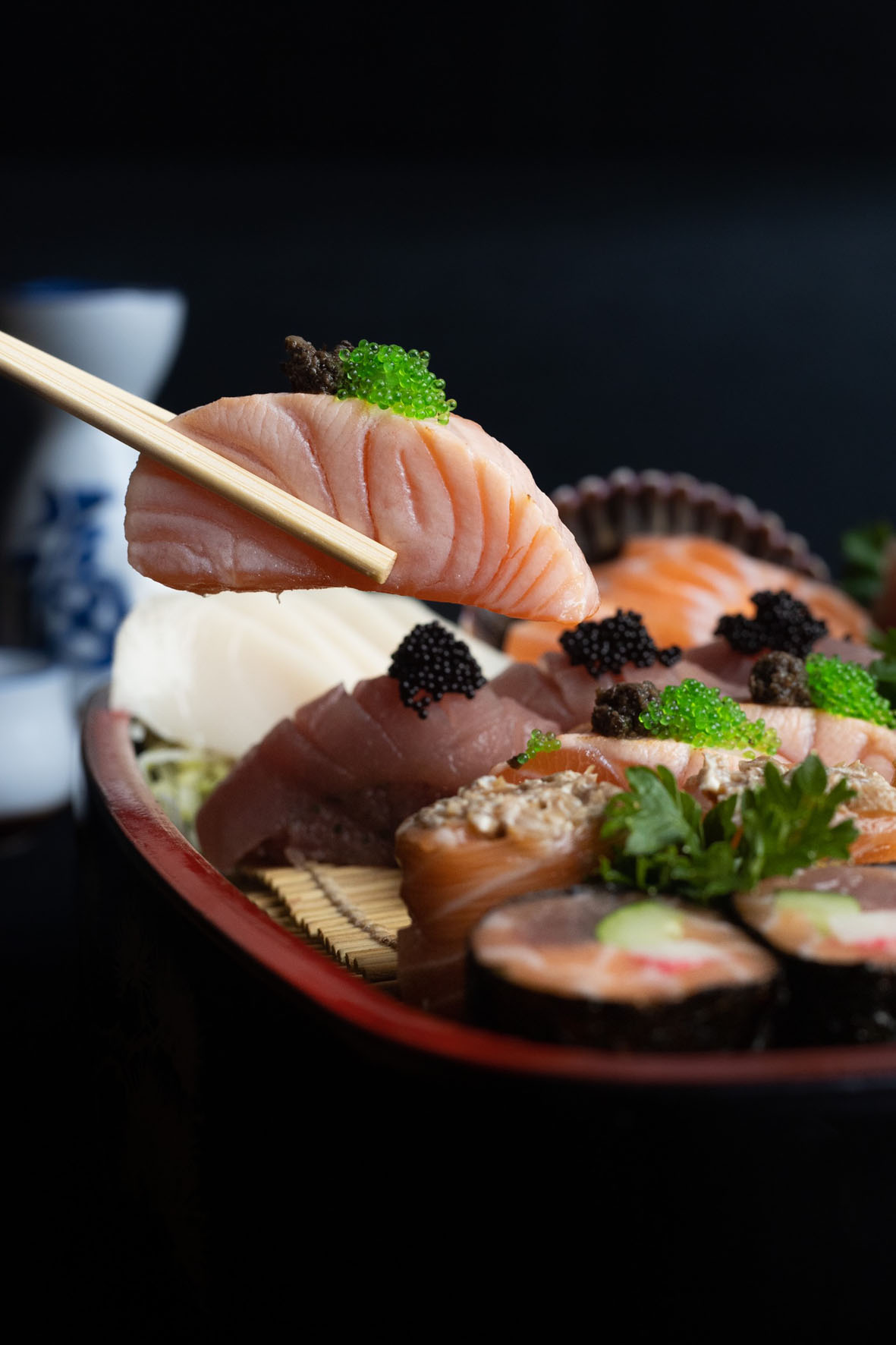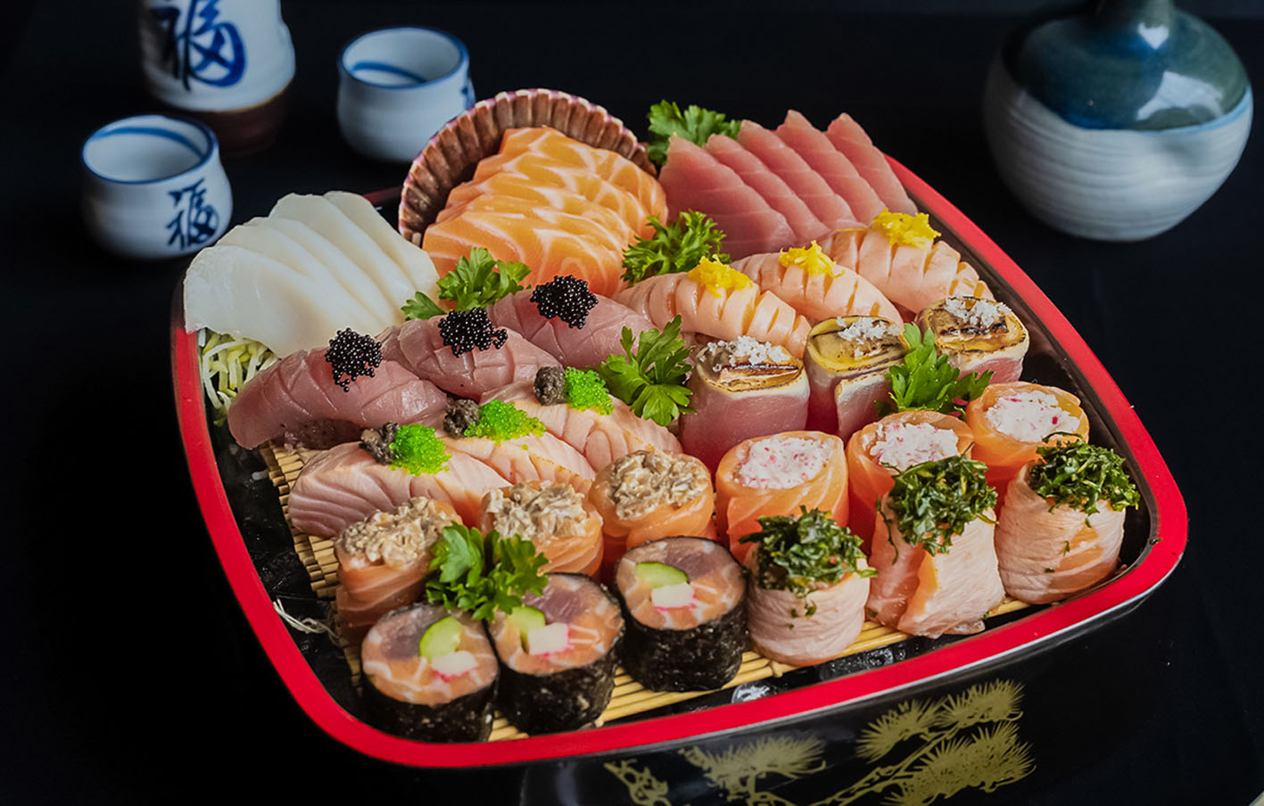 Pratos como atum selado na canela, yakissoba de abobrinha com carnes e vegetais, jou de vieiras trufado, jou de atum com foie gras e barriga de salmão trufada com ovas estão entre as opções.
