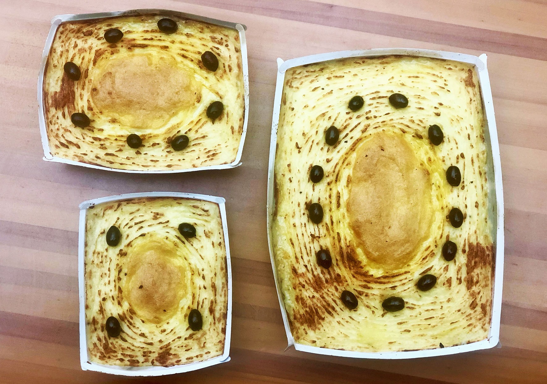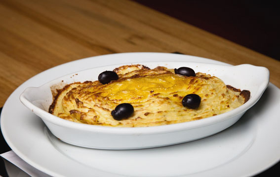 O prato traz lascas de bacalhau gratinadas com purê de batatas, cebola, azeitonas pretas e azeite. Há, para a Páscoa, a porção regular (R$ 96,00) e para duas (R$ 163,00) ou quatro pessoas (R$ 307,00).
