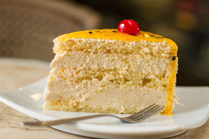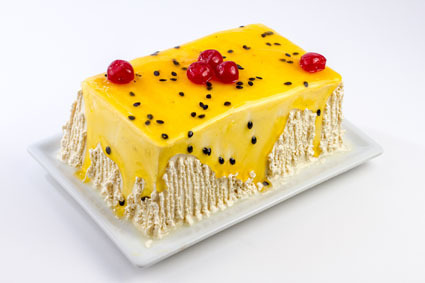 O Maracujá#58 tem massa branca, recheio de mousse feita com a fruta, cobertura de mousse com ganache de maracujá e cerejas na decoração.