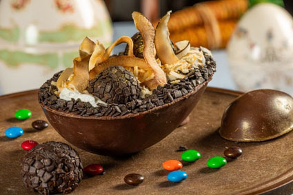 – Ovo de Páscoa tradicional rendado (350g – R$ 278,50) com cascas ao leite, branco ou meio amargo. Sabores: brigadeiro de paçoca, creme de castanhas ou brownie trufado.