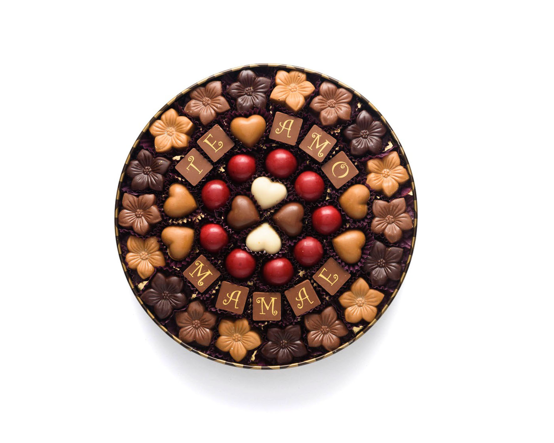 A linha de Dia das Mães da marca traz o Coração de chocolate recheado de pão de mel (165g/ R$ 159,00), a Caixa de best sellers com rochedos de amêndoas caramelizadas banhadas em chocolate belga ao leite, pecan bites com especiarias, brownie banhado em chocolate belga ao leite, mix de lascas de chocolate belga (600g/ R$ 359,00) e a Maleta champagne (Moët Chandon) com trufas de chocolate belga, bombons de Nutella crocantes e pães de mel (750ml + 270g/ R$ 799,00).