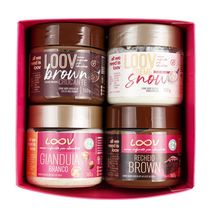 – Presente LOOV ROSA: creme quatro sabores variados (quatro unidades – R$ 156,00 ou 3x de R$ 52,00).
