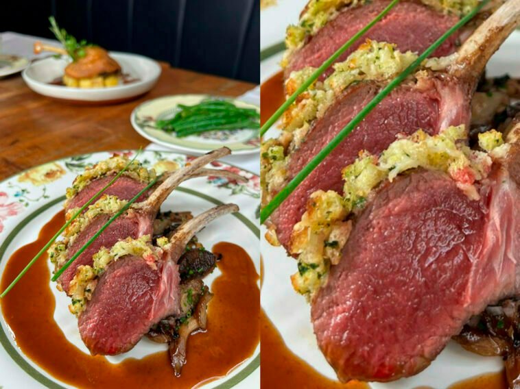 – Carré d`agneau en croûte d’erbe fresche (R$ 168,00): carrê de cordeiro em crosta de ervas frescas.