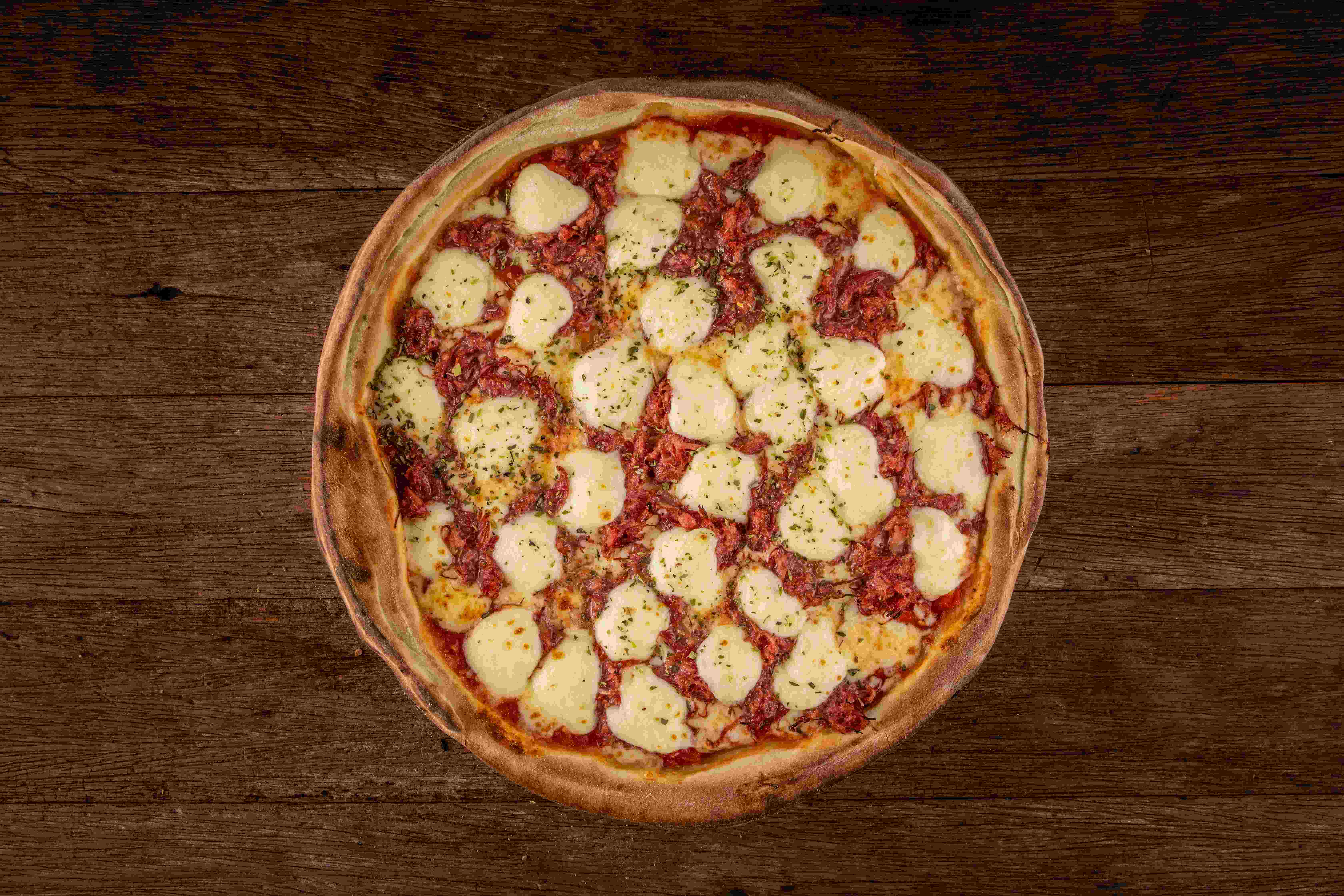 O outro lançamento é a Pizza de Carne Seca com Catupiry (a partir de R$ 89,00), com molho de tomate italiano, mussarela, carne seca de primeira, Catupiry e orégano.
