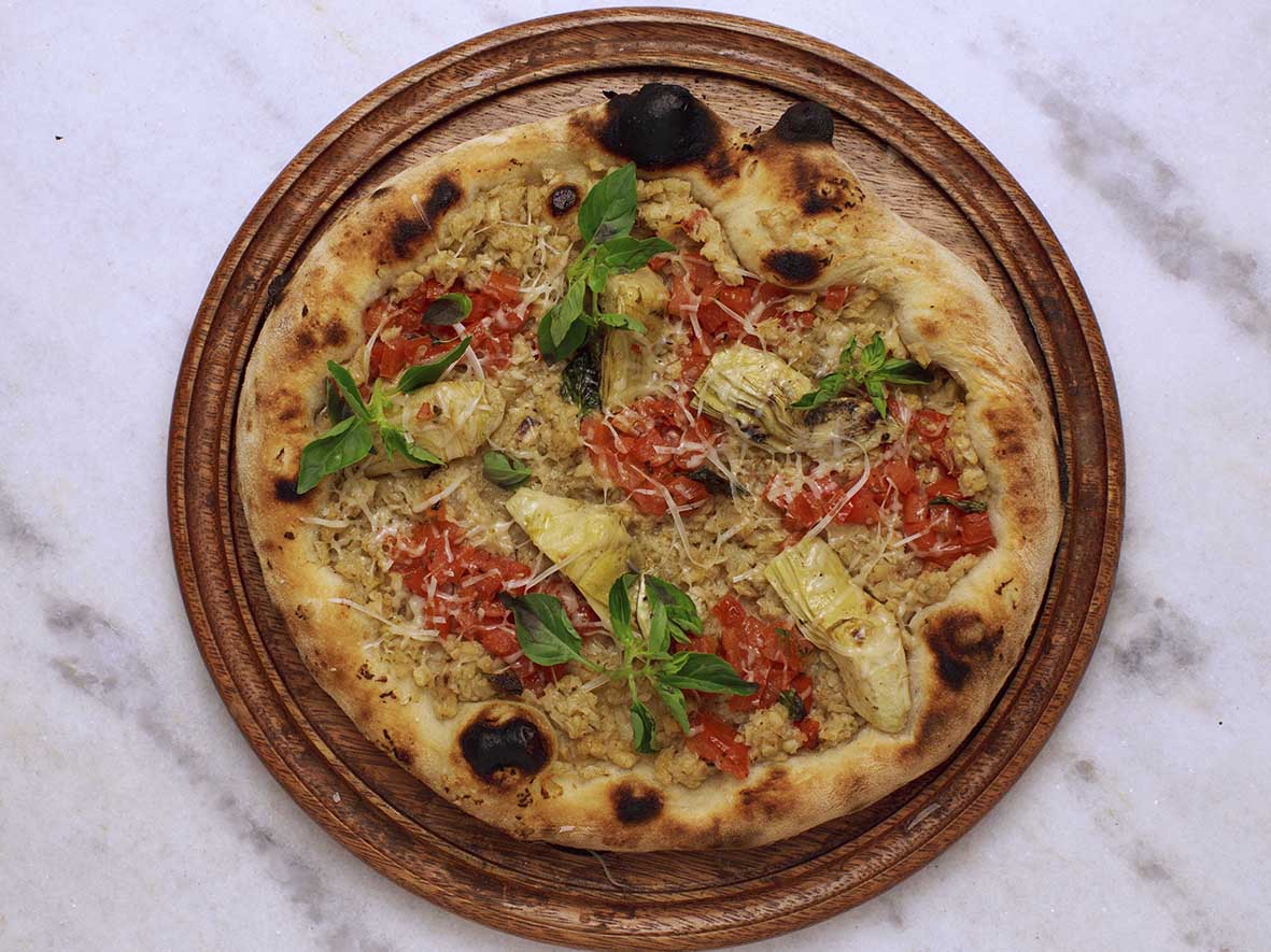 – Alcachofra: molho de tomate, muçarela, coração de alcachofra grelhado, pimenta-do-reino e parmesão (R$ 109,00).