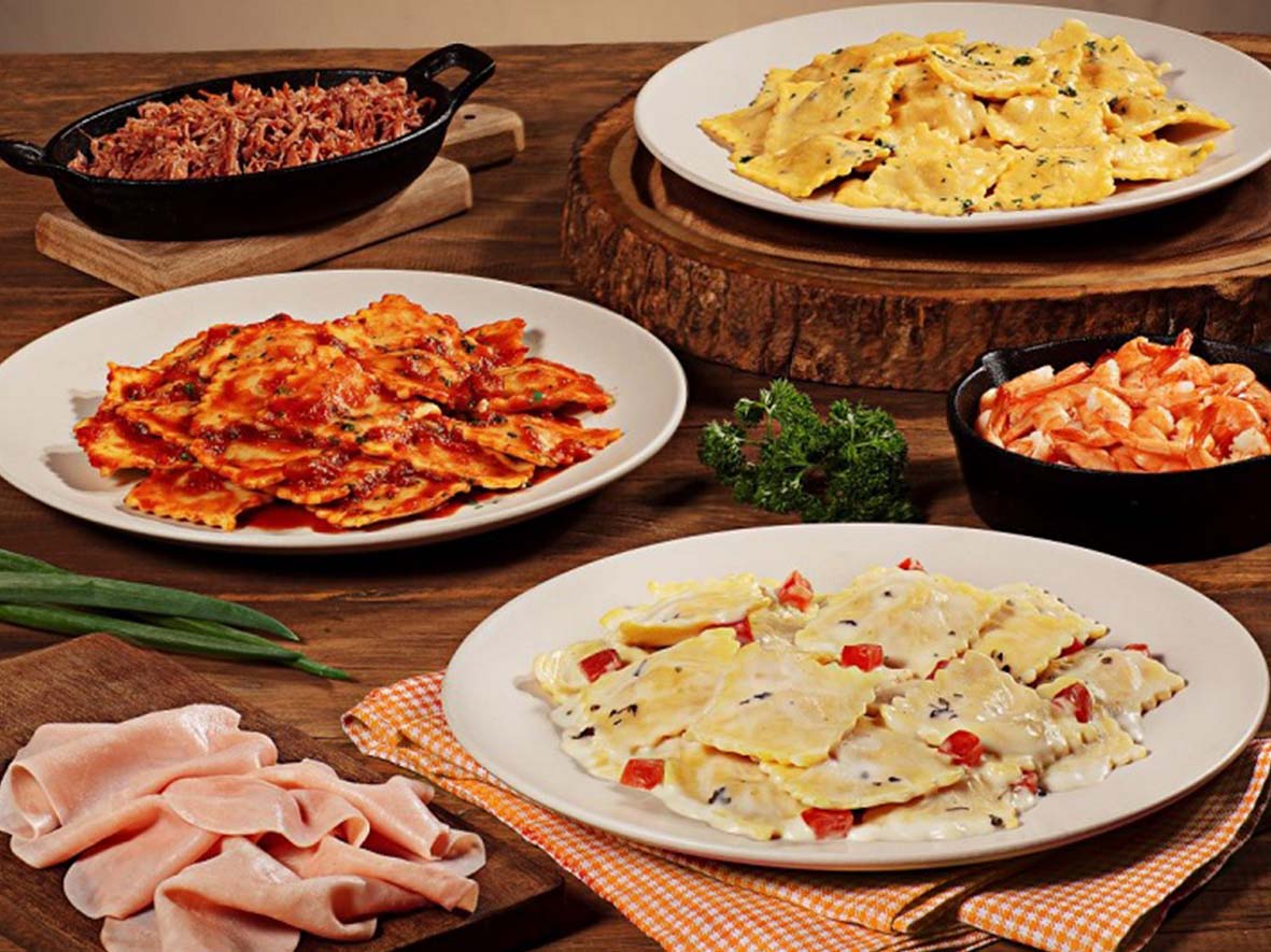 O prato traz a massa recheada de Levíssimo Seara feito de lombo suíno e queijo, com molho de queijos e finalizado com tomate e orégano.