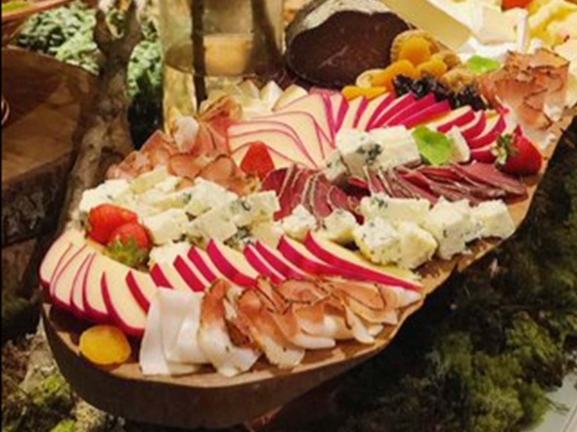 – Entradinhas como petit brie em crout com cerejas, salada de folhas, lascas de queijo serrano, romã com castanhas tostadas, salada de grão de bico com lâminas de bacalhau, azeitona azapa, tender ao molho de damasco com capim santo, avocado cobb salad com fatias de parma crocante, baby leaf, peito de frango defumado, tomate-cereja e queijo roquefort, quiche de bacalhau com cebola brullé e tomates verdes fritos e amêndoas laminadas.