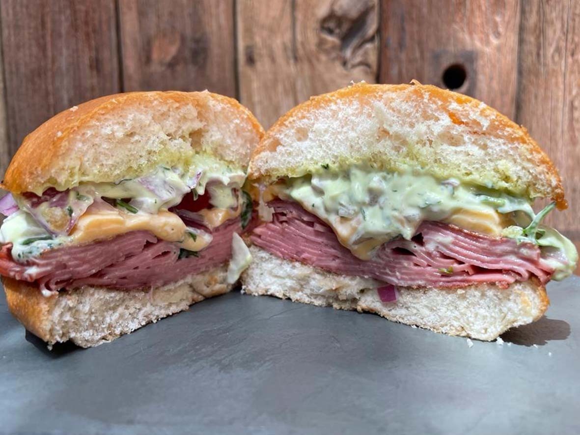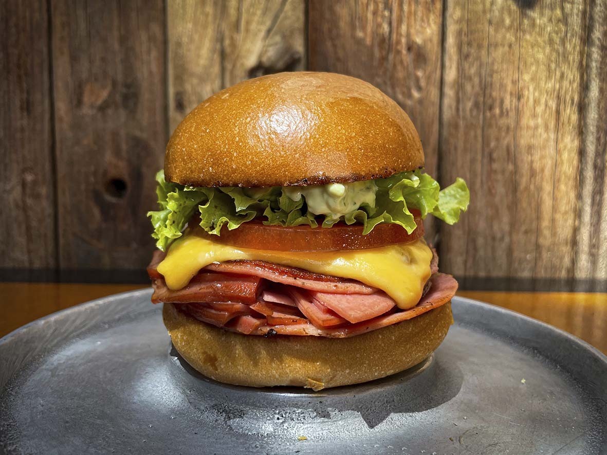 Uma das opções é o X-Salada Mortadela (R$ 26,90), que tem mortadela duplamente defumada, queijo prato, tomate, alface e maionese verde caseira no pão de hambúrguer Attimino.