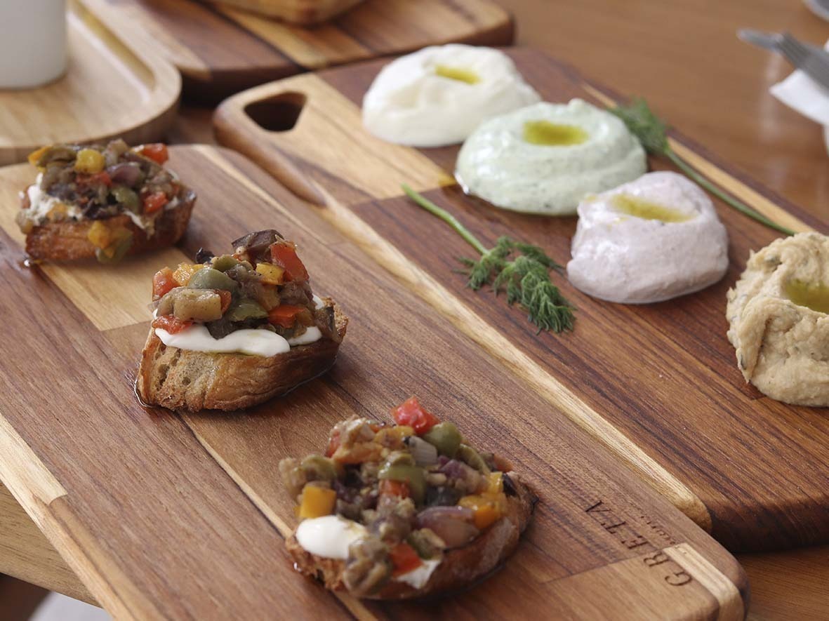 As entradas também mudaram e agora incluem a Tetralogia de Pastas: mini degustação das pastas de hummus, azeitonas pretas, endro-dill, e queijo de cabra cremoso, acompanhadas de pão pita (R$ 48,00); Psomaki: brusqueta com caponata de berinjela, pimentão vermelho, tomate cereja, coalhada, azeitonas pretas e alcaparras (R$ 24,90); e Sfoliáta Babaganoush: folhado de babaganoush com coalhada seca e romãs (R$ 31,00).