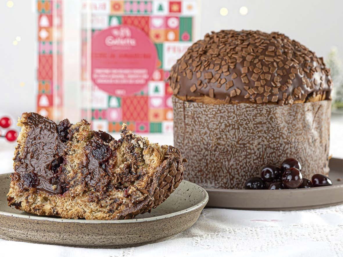– Panetone Cereja Amarena (R$ 135,00 – 900g), com recheio cremoso de cereja silvestre italiana e cobertura de chocolate 40% cacau.