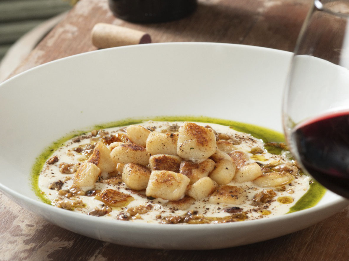 – Gnocchi Clássico com Grana, Tartufo e Noce: com fonduta de Grana, trufa e crocante de nozes.
