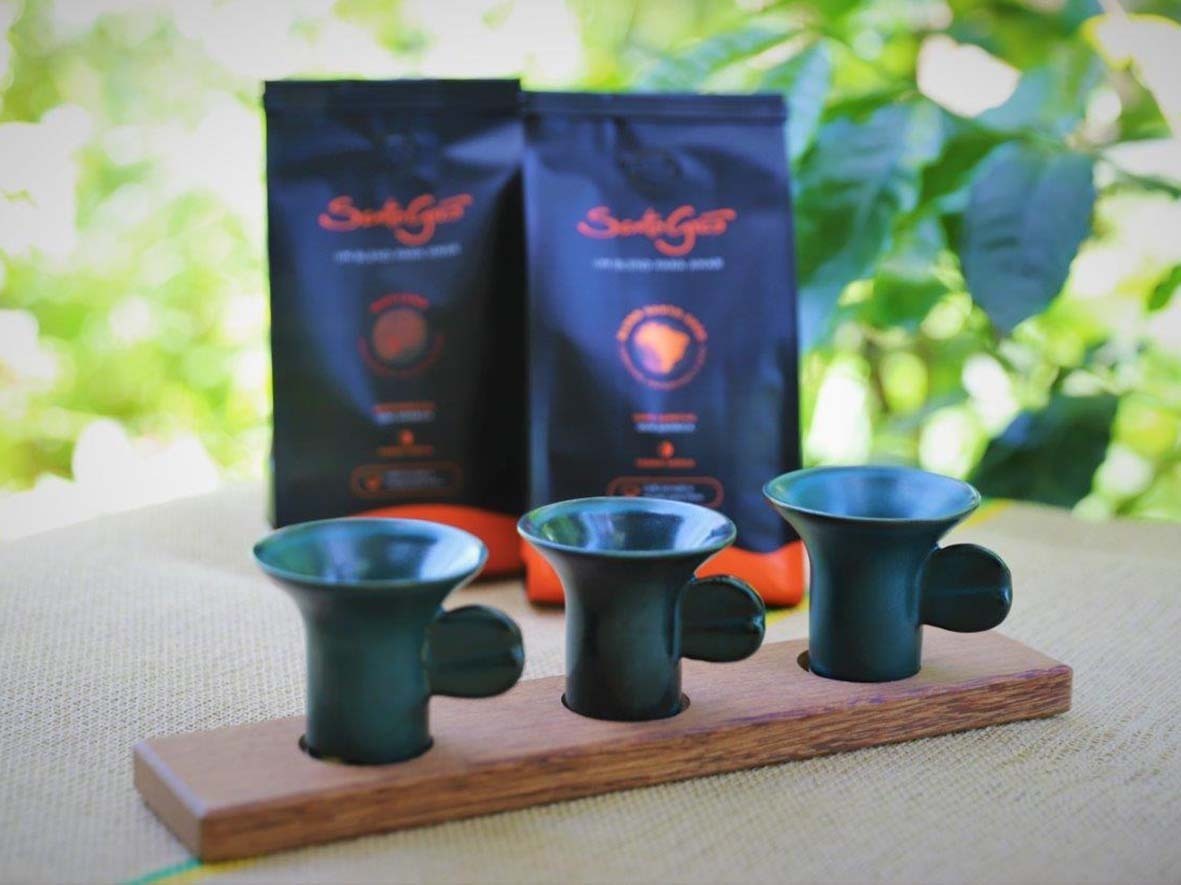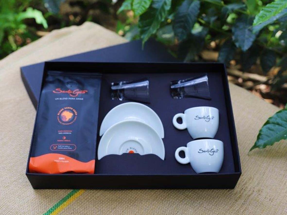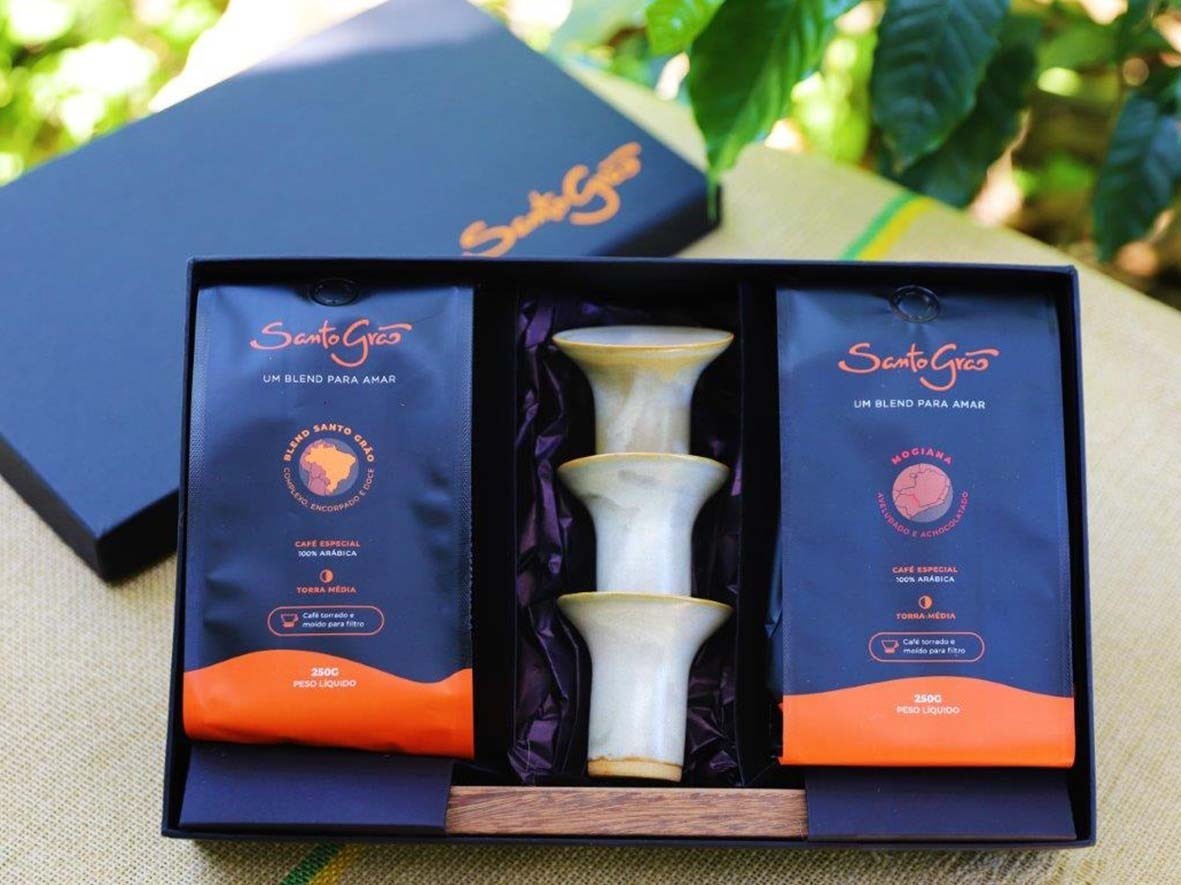 O kit de Natal tem trio de microlotes Arara, Vulcão e 0% Arábica (R$ 110,00); Santo Grão (café Blend Santo Grão de 250g moado na preferência do consumidor), com dois conjuntos de xícaras pequenas e mini copos (R$ 140,00) e o Muriqui, com três xícaras do Atelier Muriqui e dois pacotes de café Blend Santo Grão e Mogiana (R$ 230,00).