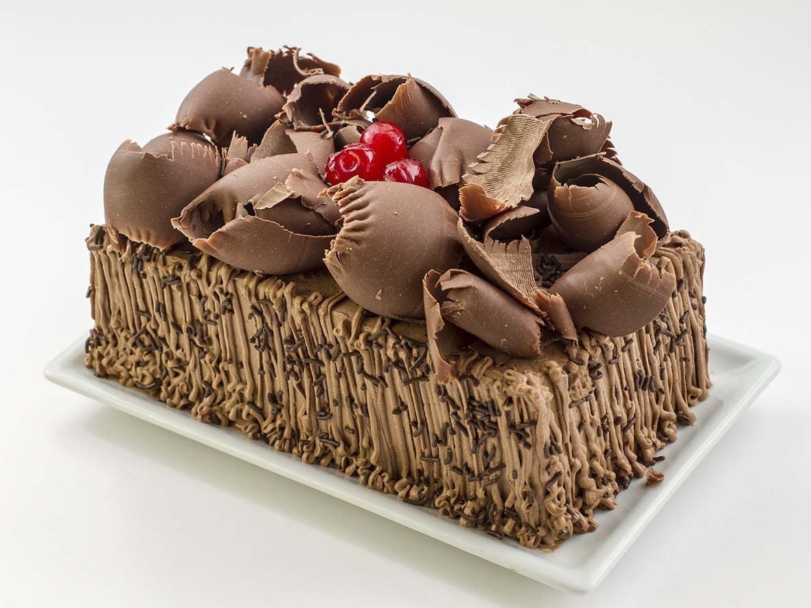 O Delícia de Leite II tem massa branca, recheio de mousse branca com leite em pó, cobertura de mousse branca, raspas de chocolate, leite em pó e cerejas na decoração.