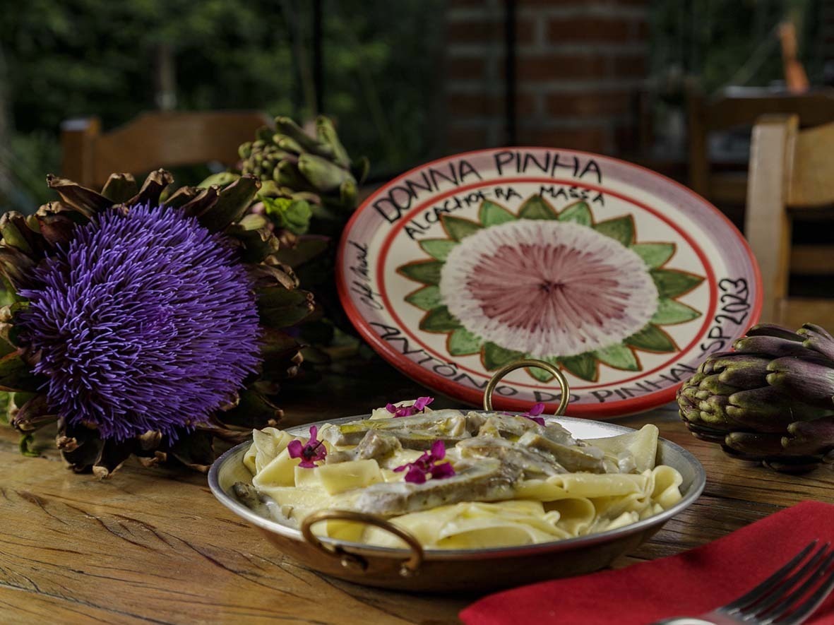 O restaurante Donna Pinha, em Santo Antônio do Pinhal, São Paulo, está com uma novidade no cardápio. A casa passa a servir o Pappardelle de Alcachofra, feito com trigo italiano, molho branco de leite e queijo regional, além de alcachofras da Serra da Mantiqueira.