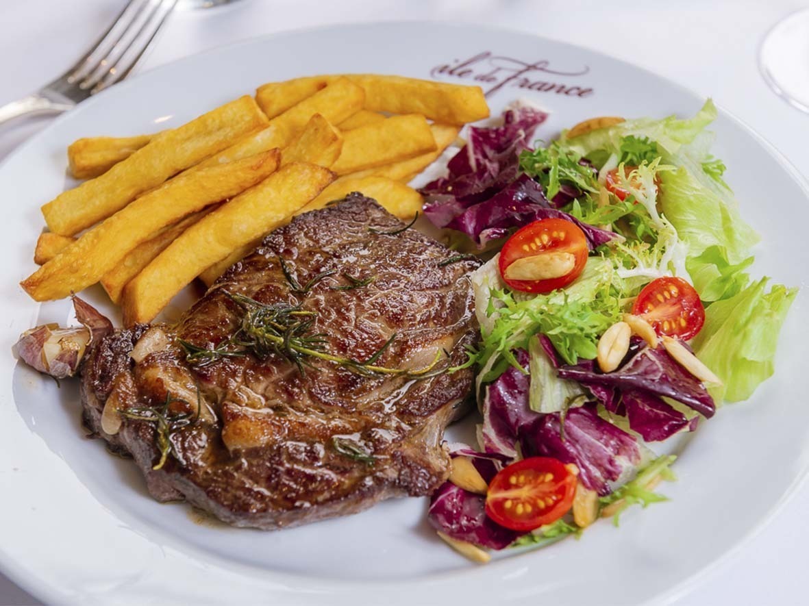 – Steak Frite: entrecote acompanhado de batatas francesas e uma das quatro saladas à escolha do cliente.