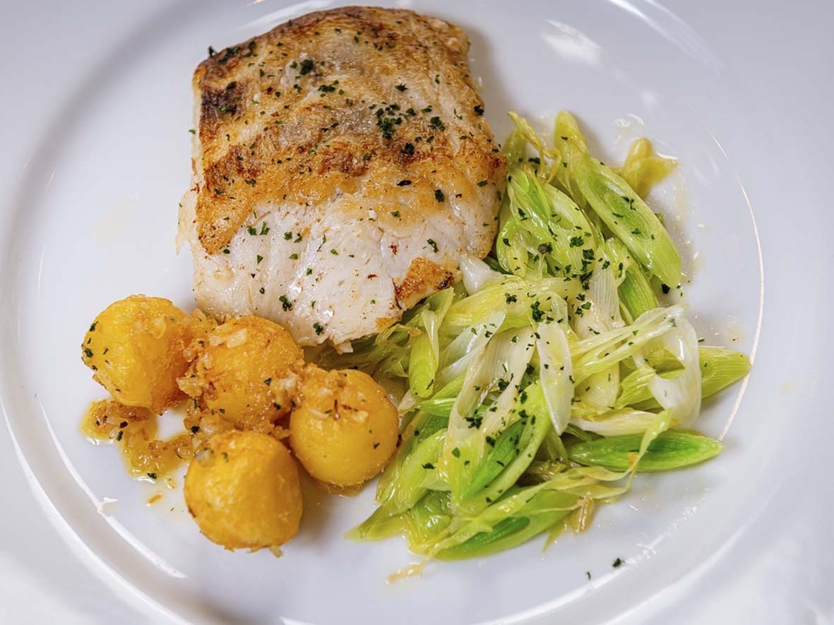 – Poisson au Poirreaux: peixe grelhado com refogado de alho poró e batata sautée.