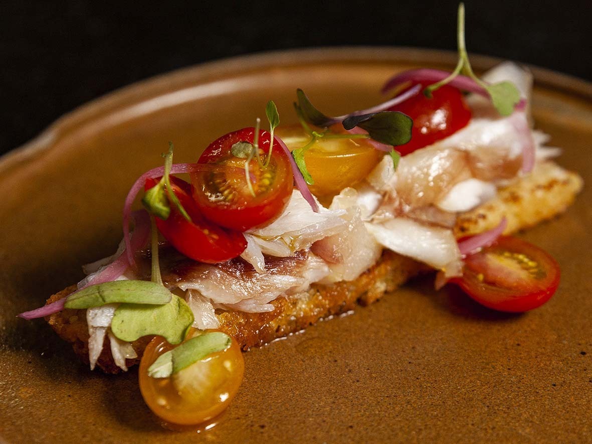 – Focaccia com olhete curado e defumado, picles de cebola roxa e tomate cereja: R$ 57,00.
