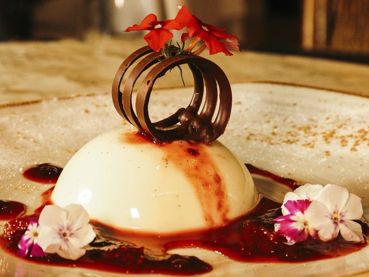 Outra opção é o Pesce in Crosta, com pescada amarela grelhada com crostas de quinoa e servida com aspargos, pétalas de tomate e veloutée de ervas e vinho branco. Por fim, a terceira sugestão é a Panncotta, um flan italiano a base de creme de leite e iogurte, fava de baunilha e coulis de frutas vermelhas.