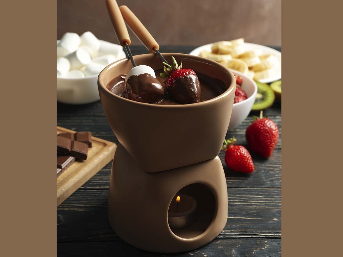 Entre as opções de comidas disponíveis estão fondue doce e salgado