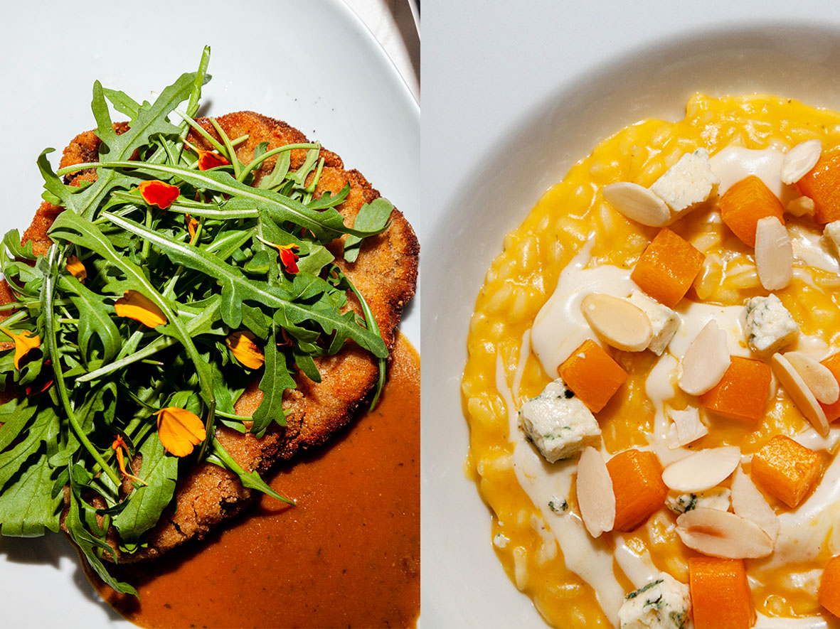 – Risotto de abóbora com amêndoas e gorgonzola dolce (R$ 108,00): risoto de abóbora, fonduta de gorgonzola dolce DOP e lâminas de amêndoas torradas.