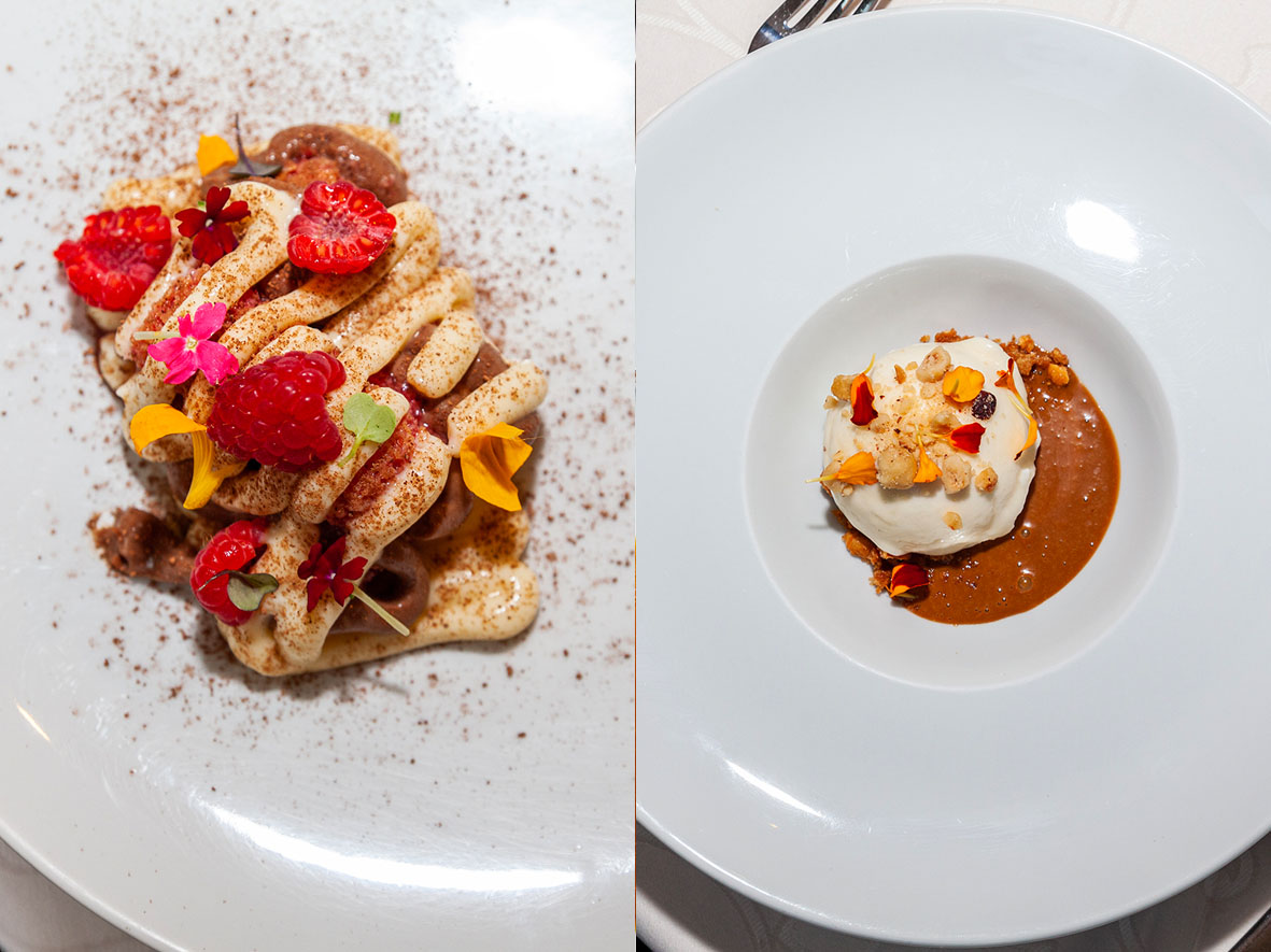 – Mascarpone com avelã e calda de chocolate branco caramelizado (R$ 46,00): mousse de mascarpone com crumble de avelã e calda de chocolate branco caramelizado.