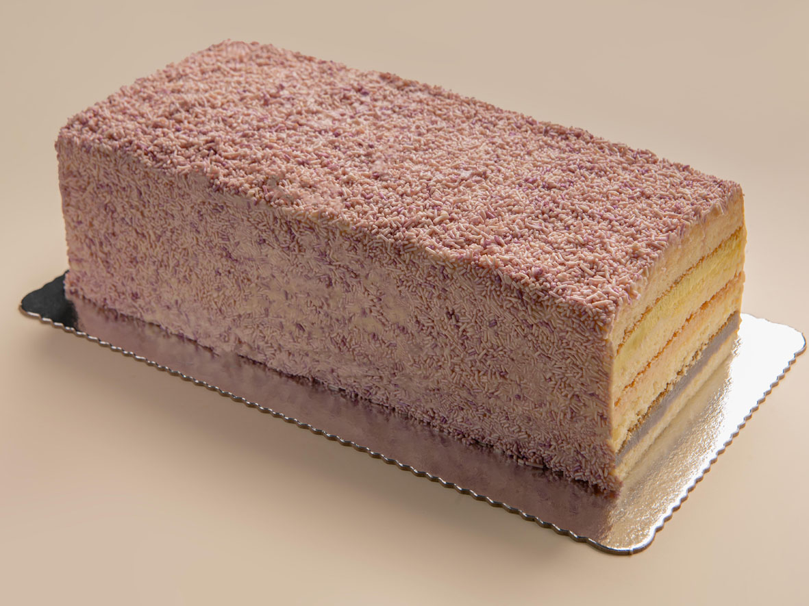– Lavanda: massa amanteigada, recheio de limão siciliano, brigadeiro de lavanda e brigadeiro branco.